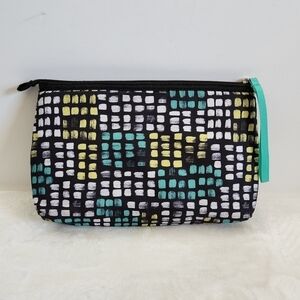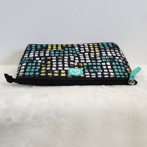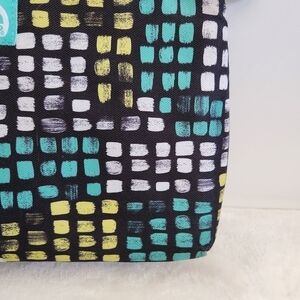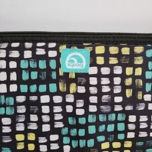 Igloo Lunch Clutch Bag. Fun colors of black, white, mint green & yellow. Top zip closure, attached wristlet, antimicrobial, fully insulated for maximum cooling, leak-resistant gray liner, easy to clean. Convenient slim shape for on the go! Can be carried alone or slipped inside a larger bag for easy toting. Approximately measures 12.5" x 7.5" x 4". Pattern is no longer available online. No rips or stains. Like new condition!