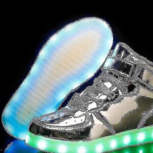 Step into the future with these head-turning IGxx men's high-top sneakers! These aren't your average shoes – they feature vibrant LED lights embedded in the sole, making every step a dazzling display. The sleek chrome silver finish gives them a futuristic and stylish edge, perfect for making a statement wherever you go. Whether you're hitting the club, a concert, or just want to stand out from the crowd, these light-up sneakers are sure to get you noticed.