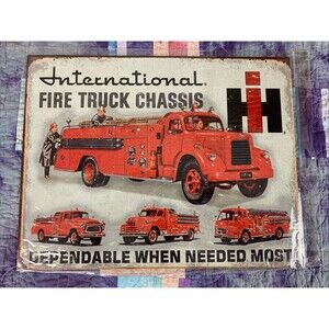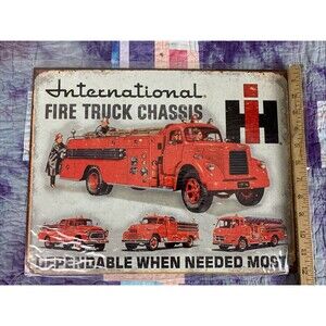 IH International Fire Truck Chassis Metal 16x12.5 Sign Decor Bar Man Cave Shop