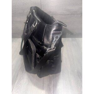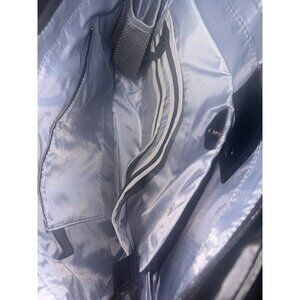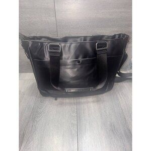 Not all cards contain RFID contactless technology - this product only helps protect cards with RFID contactless technologyIncludes tote and two adjustable crossbody straps (one solid and one fashion)Water-resistant exterior; front-left gusseted zipper pocket with five RFID card slots, clear ID window, and front magnetic snap pocket; front-right gusseted zipper pocket with soft-lined cell phone pocket and front magnetic snap pocket; main zipper entry; large zipper pocket with key clip; back snap pocket with zippered bottom to create trolley sleeve; four bottom feet; padded top handlesLined interior, padded laptop compartment holds laptop up to 15", water bottle pocket, two back-wall slip cargo pockets, clear-view pocket with zipper closure, pen holdersMeasures 15" x 5.5" x 11" with 28" to 54" strap drops; 10" handle drop; weighs 1 lb, 8 ozBody 100% nylon; lining 100% recycled polyesterImported