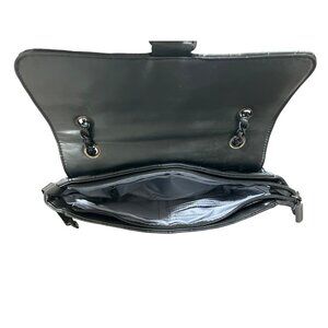 IHKWIP Quilted Black Shoulder Bag With Chain Strap & Buckle Closure