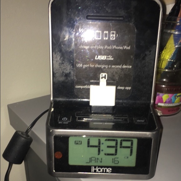 IHOME that plays music charges your phone... etc! chargers from an iPhone 4- to current iPhones! also iPod touches! in very good condition and was very expensive