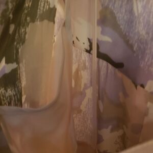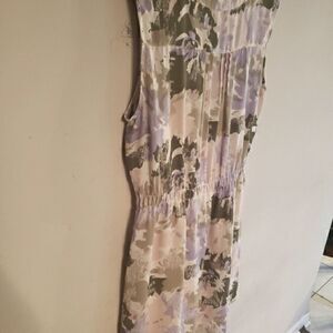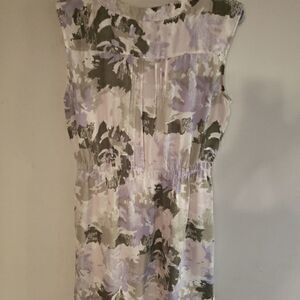 White Color, Multicolor Neutral Colors, Large Size, Round Neck, Polyester, Lightweight, Lined, Buttons, Pintucked At Chest, Sleeveless, Splash Print All Over, Above The Knee Lenght, Cinched Waist, Flattering Cut, Loose Fit, Soft, Comfortable Fit, Casual/Cocktail Wear Gently Wear, Exellent Condition.