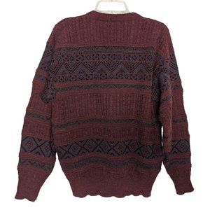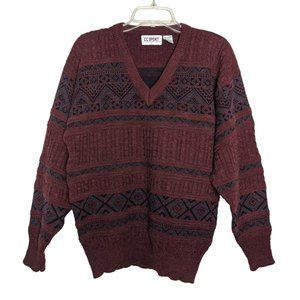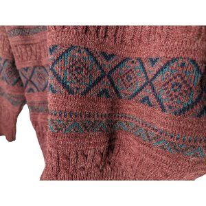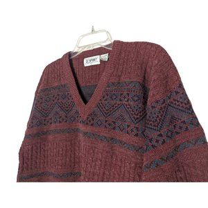 II SPORT Vintage V neck long sleeve pull over Aztec design Burgundy Sweater L