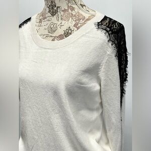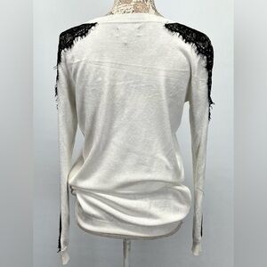 Ivory crew neck sweater with black lace accent down sleeves from IJEANS by BUFFALO, size M.