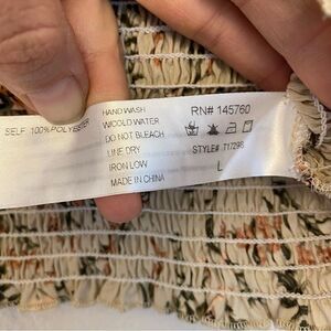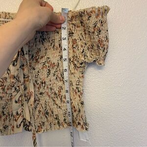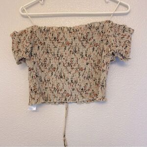 IJOAH Beige tan floral smocked off shoulder crop top tube top Lace up festival L