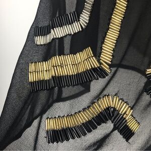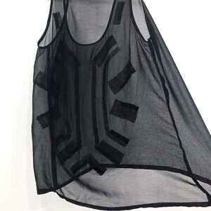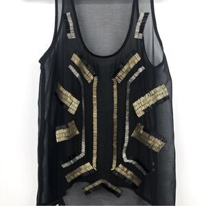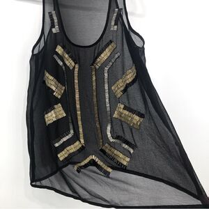 Semi sheer black tank blouse embellished on the front with Silver / Gold tone and black tube beads