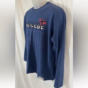 IK JEANS BEICEBE geographic blue Long Sleeve T Shirt Top Men’s Size XL VTG Y2K