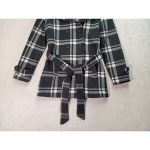 IKE BEHAR Coat Women Small Black White Plaid Collar Double Breasted Button Front