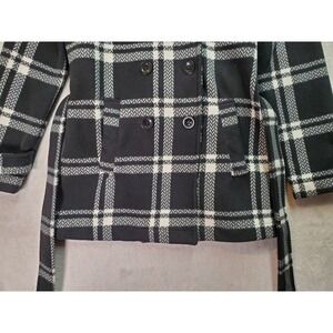 IKE BEHAR Coat Women Small Black White Plaid Collar Double Breasted Button Front.