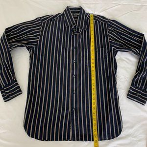 Blue/Brown Stripped, Long Sleeve, 1 Front Pocket, 100% Cotton, Made in Canada.
