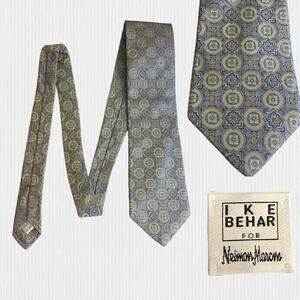 IKE BEHAR for Neiman Marcus Periwinkle Blue Green Textured Repp Silk Tie