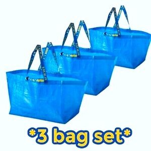IKEA 3 Tote Bags Reusable Frakta Bags Brand New With Tags NWT Set Of 3 Blue