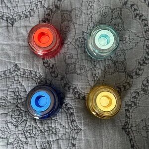 Set of 4 candle holders in red, blue, light blue, and yellow