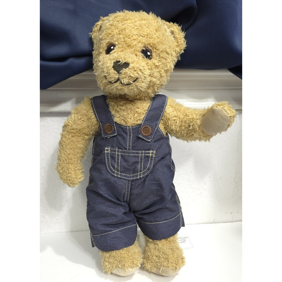 IKEA BRUMMA Teddy Bear Jointed Cuddle Brown Plush in Blue Denim Overalls