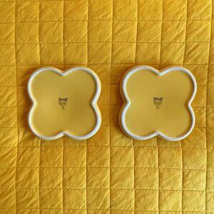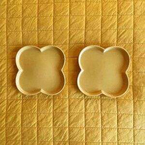 -Set of 2 ceramic clover shaped plates (golden yellow)