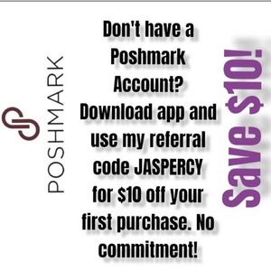 Need a Poshmark Account? Sign up and enter my invite code: JASPERCY and get $10 off your first purchase. No commitment.