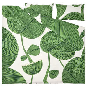 KUNGSCISSUS duvet cover set with bold leaf pattern on a white base adds a fresh statement to your bedroom. 100% cotton percale, tightly woven to create a long-lasting fabric with a smooth and crisp feel.