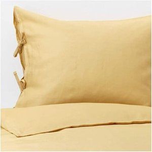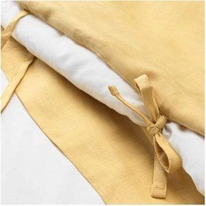 Brand new IKEA PUDERVIVA TWIN Duvet Cover Set + Pillowcase Amarillo in original package. Details: The natural fibers in linen create subtle variations in the surface which gives your bed linen a distinctive texture and matte luster. Linen helps your body to maintain a comfortable, even temperature all through the night because it breathes and absorbs moisture. Linen is a strong, durable material that washes well and has a natural protection against stains. Becomes more beautiful over time. Decorative ribbons keep the duvet in place. Includes: 1 Twin duvet cover and 2 Twin pillowcases. 104 thread count. Thread count indicates the number of threads per square inch of fabric. The higher the thread count the more densely woven the fabric. Pillowcase with decorative ribbons. Materials & care: 100 % linen Machine wash, hot, normal cycle. Do not bleach. Tumble dry, medium, normal cycle. Iron, high. Do not dryclean. Size: Thread count: 104 square inches Pillowcase quantity: 2 pack Pillowcase length: 20 in Pillowcase width: 36 in
