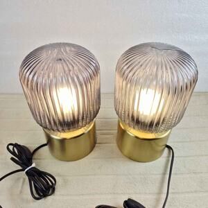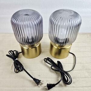 IKEA SOLKLINT Table Lamps Smoked Ribbed Glass Shade & Brass-Tone 11"Lot of 2
