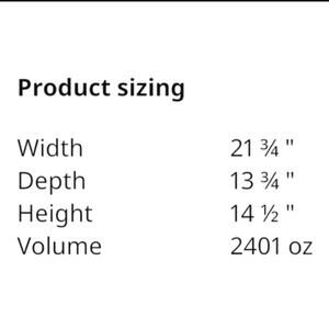Width: 21 ¾ " Depth: 13 ¾ Height: 14½"
