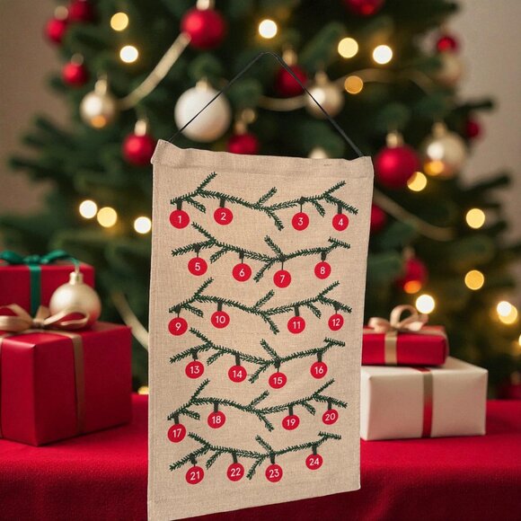 "Count down the days until Christmas Eve! This decorative Advent calendar has 24 dark-green loops where you can hang small homemade gifts. Made of durable jute that lasts year after year."