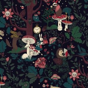 Unique woodland design with mushrooms, flowers, birds, bunnies, squirrels, and a sneaky fox.