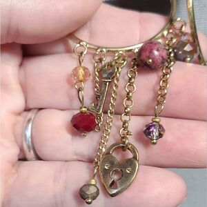 Make quite a statement with these stunning danglers. Purchased in Paris, where accessorizing in a bold way is a fashion essential. Colorful marbleized, clear and jewel tone stones pop with romantic symbols added. These earrings will be equally at home with casual wear or formal - they'll dress up any event from a party to vacation travel to resortwear to a date!