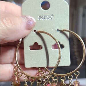IKITA PARIS Earrings Hoops Beaded Danglers Pierced Gold Statement