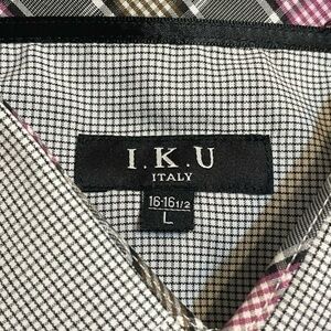 I.K.U Italy Polo classic check Men button up shirt NWOT Sz large