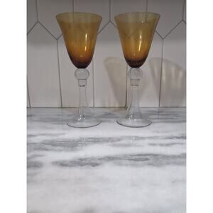 IL Caffe Grande Amber Goblet Glassware, Stemware Water Cocktail Glasses Set of 2