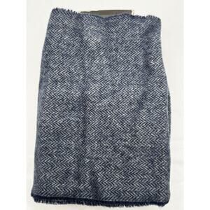 IL MORO FIRENZE Wool Cashmere Scarf Blue With Fringe Made Italy Winter Academia