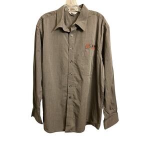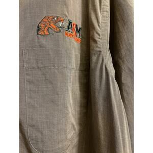 Florida A&M Rattlers long sleeve button front shirt, with cuffs. FAMU. 100% Cotton. Embroidered. Pocket on the left side. Men's size Large. Gray.