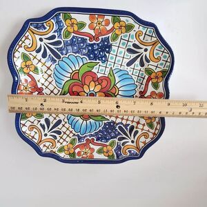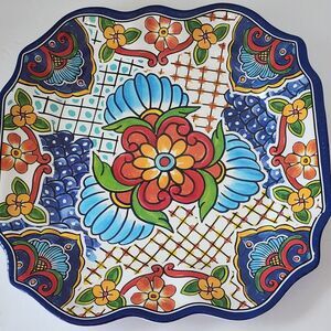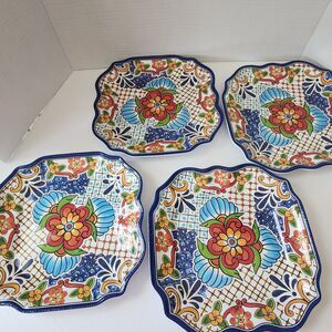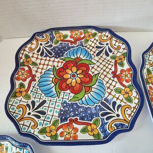IL Mulino Spanish Tile 4 Salad and 1 Dinner Plates Blue MELAMINE Square Floral