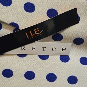 ILE -Blue/white polka dot cap sleeve sheath dress w/ blk/white bottom Sz 16 NWT.