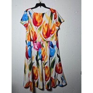 ILE New York Womens Floral Short Sleeve Midi Dress Size 16 Boho Easter Spring