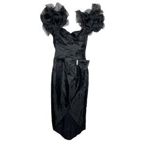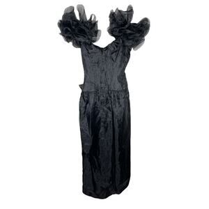 ILGWU Women's Ball Gown Formal Dress Black Beauganza Bow Ruffle Vintage