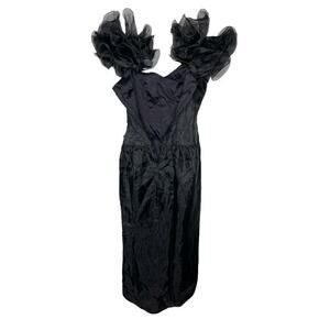 ILGWU Womens Gown Formal Dress Black Beauganza Ruffle Vintage Size 8 Made In USA