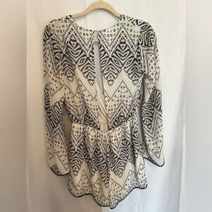Stylish romper with geometric patterns. Long sleeves and a flattering fit. Perfect for any occasion. So pretty!