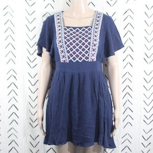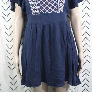 ILLA ILLA Embroidered Mini Dress Blue Size Medium