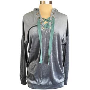 ILLA ILLA Gray Velvet Lace Up Hoodie Size L Plush Warm Cozy Lounge Athleisure