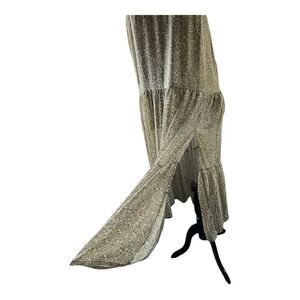 This elegant strapless dress features a beautiful green hue, perfect for any occasion. Its flowing design offers both comfort and style.