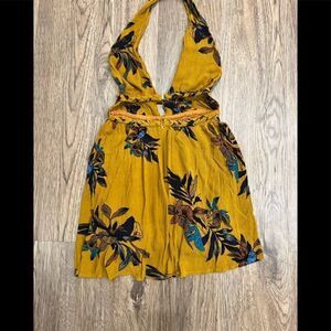 ILLA ILLA Mustard floral printed dress with a halter Top