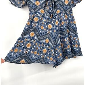 ILLA ILLA NWT Boho Tie-Front Floral Cutout Romper Blue/Yellow/White Size L