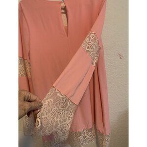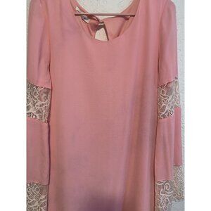 ILLA ILLA Pink Shift dress White Lace Trim Festive Party Wedding Size Small