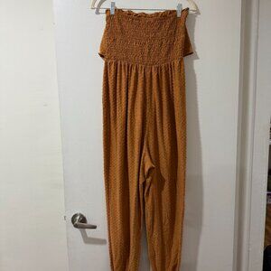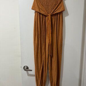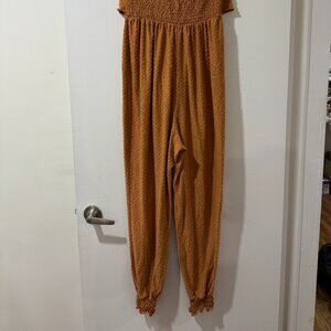 🌾 ILLA ILLA Smocked Boho Jumpsuit – Rust Textured | Size Medium 🌾