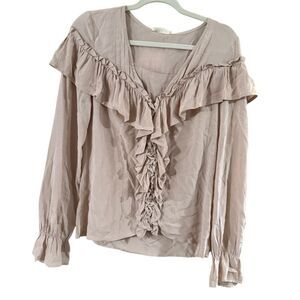 ILLA ILLA Tan Long Sleeve Ruffled Blouse