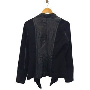 ILLIA Womens Waterfall Front Mixed Media Leather Cardigan Jacket Black Medium