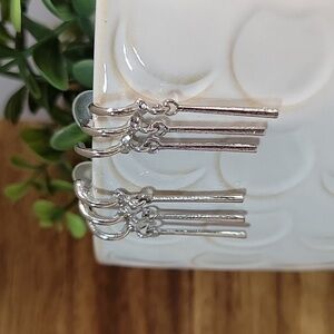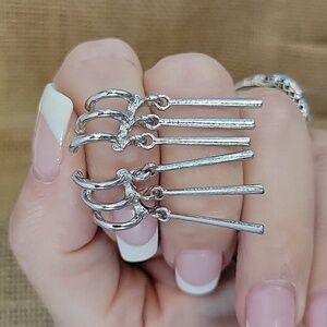 Unique pieces with a claw design that gives the illusion of three piercings. Free-moving metal fringe and hypoallergenic posts.