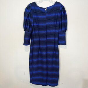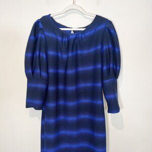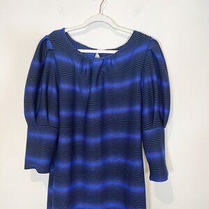 ILLord Dress Size 1X Black Blue Striped Balloon Sleeve Stretchy Midi